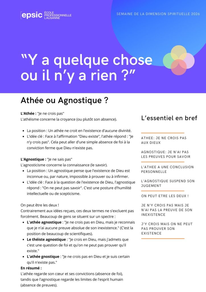 | Position de départ | L’incapacité de savoir (Agnosticisme). | Le constat de l’absence (Athéisme). |